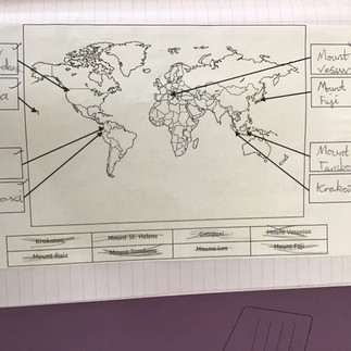 We also looked at how mountains were made. We found out about the 3 types of mountains; fold, fault and volcanic. The children used Chromebooks to label some key mountain ranges on the world map. Next we looked at volcanoes, we found famous volcanoes and added them to our map. We learnt about the different layers of the earth and that holes in the earth's crust allowed magma to be released from volcanoes.