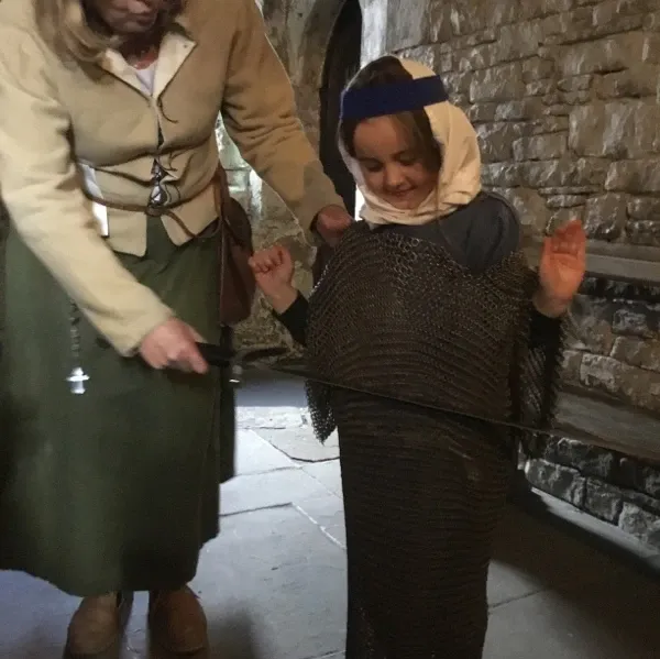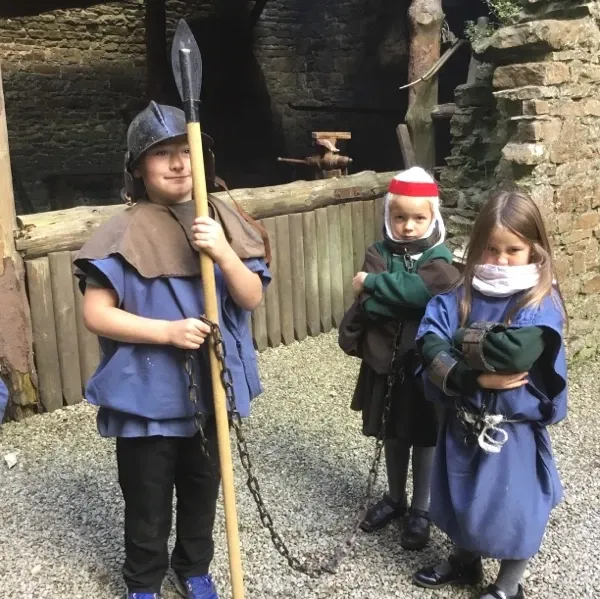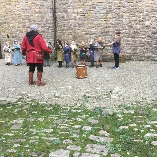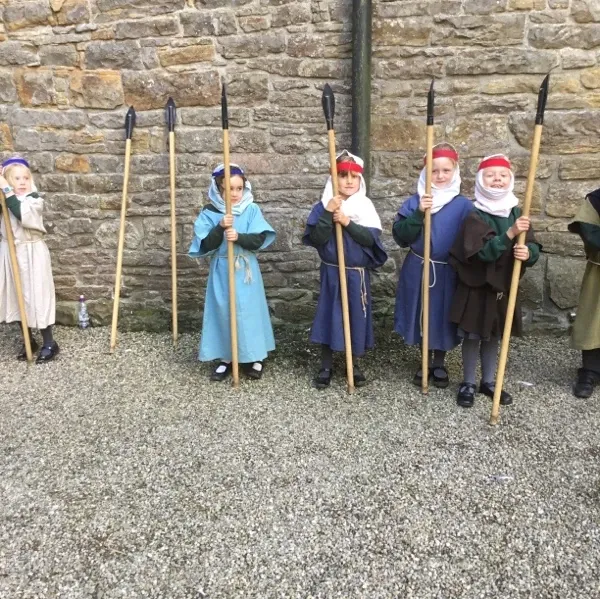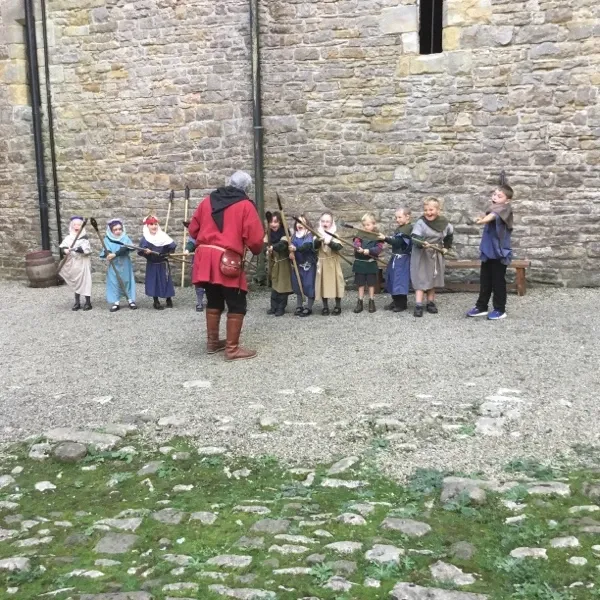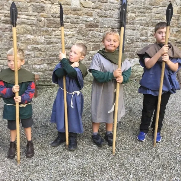 Then it was lunchtime, we had a picnic outside. After that it was time to be archers and soldier! We enjoyed marching around the bailey with spears. Following that some of us were guards, prisoners, woodmen, bakers and brewer then we explored the lord and queens rooms.