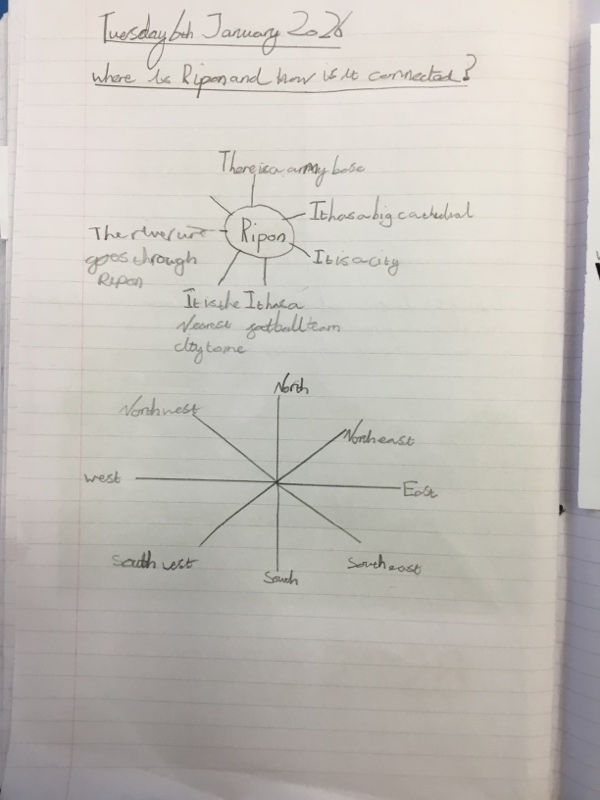 Our first lesson looked at where Ripon is and how it is connected. In this lesson we shared what we already knew about Ripon, we used the 8 points of a compass to explore what places were in different directions from Ripon. We talked about Ripon being a city and what that means. After that we looked at the rail and road networks in the UK and how this allowed Ripon to connect with other places.