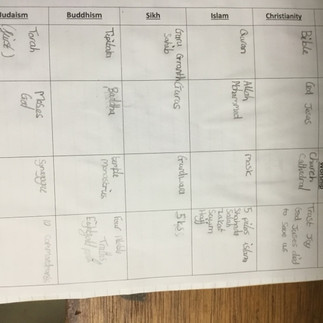 This week's learning included learning where and when the religion started. We then compare this to where Hindus can be found today. We also looked at the key information about Hindus and the children created a fact file full of key facts. We compared Hinduism to the other main World Religions we have looked at in other years. Finally, we began looking at how the key beliefs Hindus have impact the way that they live their lives.